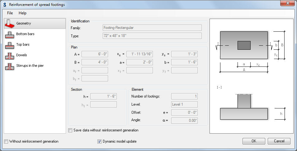 Reinforcement of Spread Footings - launched from Autodesk® Revit®.