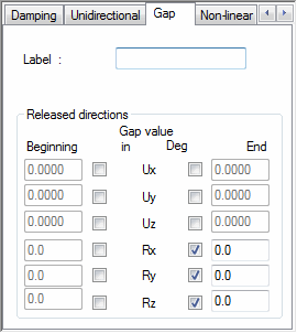 The definition of release with gap consists in indicating the release name, selecting the fixed or released degrees of freedom at the beginning and the end of the member and indicating the values of the allowable displacement or rotation for the released directions. If the direction is fixed, the displacement is equal to zero.