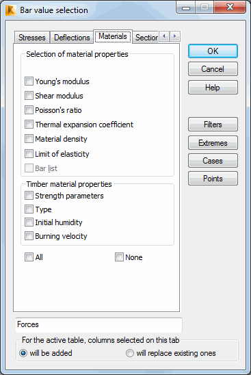 - Thermal expansion coefficient - a column for the thermal expansion value for the respective structure bars.