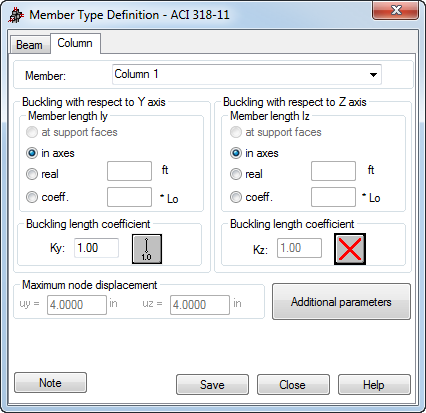 • The Member length Iy and Iz contain options that define the calculation length of a column. There are four ways to define the length: