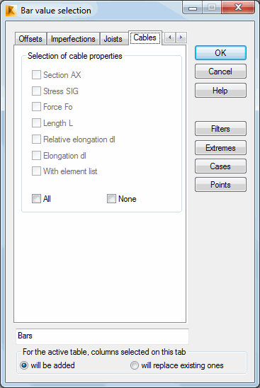 - Stress SIG - a column for normal stress in the cable for the assembly case (calculated with respect to the cable chord) that is to be obtained for the loads covered by the assembly case.