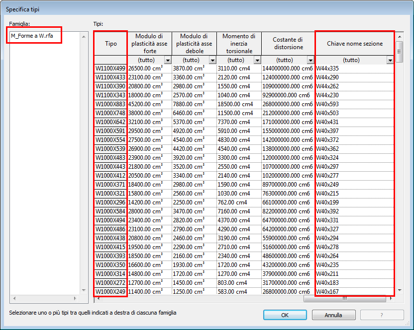 Per risultati più precisi e coerenti, è possibile utilizzare il meccanismo basato sul mappaggio di sezioni 1 ad 1 tra la famiglia di Revit e la tabella di Advance Steel e tra un tipo di profilo di Revit e un nome di sezione di Advance Steel.