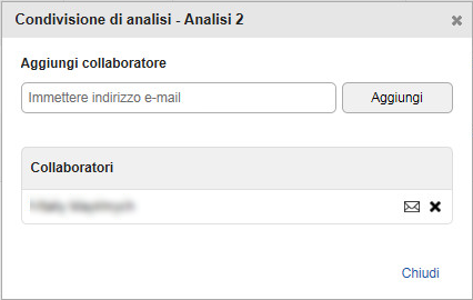 per inviare al collaboratore un'e-mail di invito contenente il collegamento all'analisi selezionata. Nella pagina del progetto, dopo la condivisione dell'analisi, l'icona Condividi accanto all'analisi viene modificata in