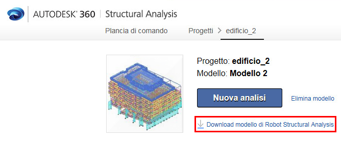 (Download modello di Robot Structural Analysis) nella colonna Analisi.