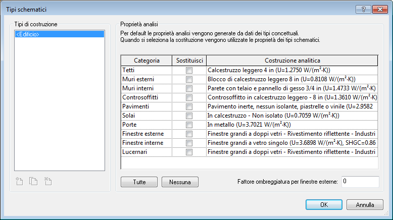 I tipi di costruzione nel file constructions.xml vengono visualizzati nella finestra di dialogo Tipo di costruzione.