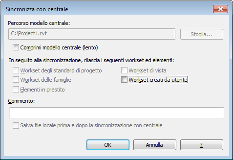 Nel caso di progetti condivisi basati su file e su server, i flussi di lavoro sono quasi identici. Le procedure per attivare i workset, sincronizzarsi con il modello centrale, caricare le modifiche più recenti sul modello centrale e rilasciare la proprietà dei workset sono identiche.