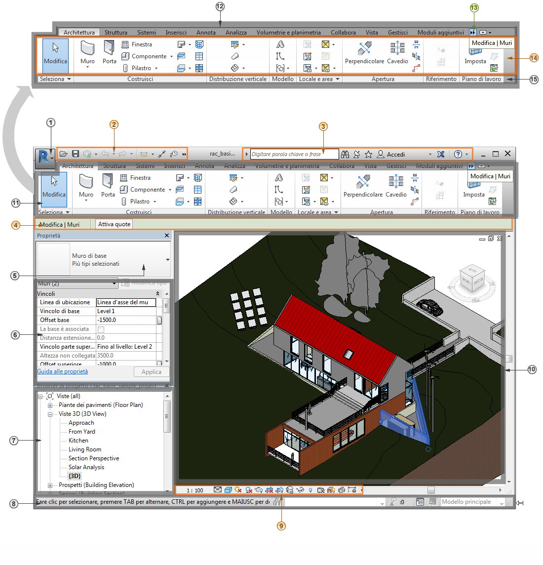 Con qualche clic è possibile modificare l'interfaccia per adattarla meglio al metodo di lavoro personale. Ad esempio, è possibile definire la modalità di visualizzazione della barra multifunzione in base ad una delle quattro impostazioni disponibili. È inoltre possibile visualizzare diverse viste di progetto contemporaneamente oppure sovrapporle visualizzando solo quella in primo piano.