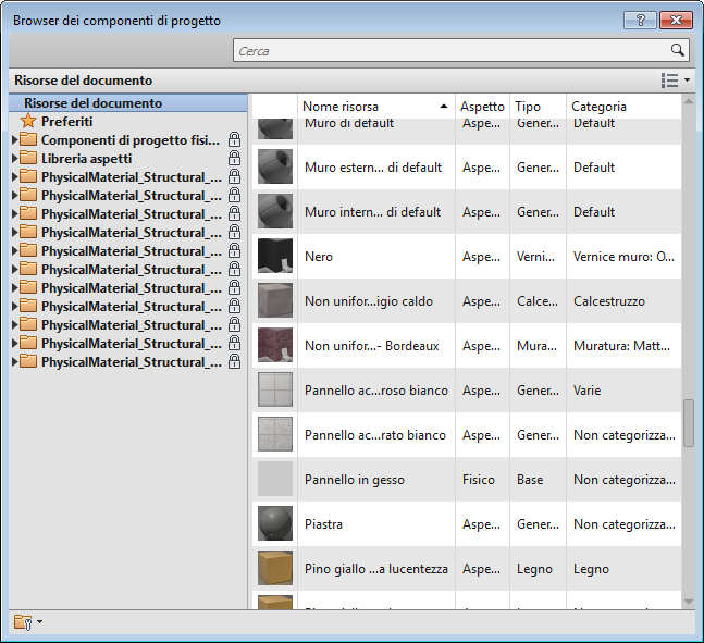 I componenti di progetto vengono salvati in un progetto Revit oppure in una libreria. I componenti di progetto che si trovano in un progetto di Revit, ma non sono associati ad alcun materiale, vengono salvati nella libreria Componenti di progetto senza riferimenti. È possibile creare e modificare i componenti di progetto senza riferimenti durante una sessione di Revit in base alle esigenze. Tuttavia, è necessario salvare il progetto Revit per salvare eventuali componenti di progetto senza riferimenti creati o modificati durante la sessione.