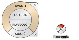 - Su/Giù (settore inferiore). Esegue lo scorrimento della vista corrente di un modello lungo l'asse Z del modello.