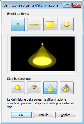 Viene visualizzata la finestra di dialogo Definizione sorgente d'illuminazione.