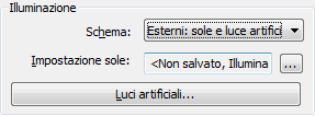 È possibile specificare uno schema di illuminazione che utilizza la luce solare e luce artificiale.