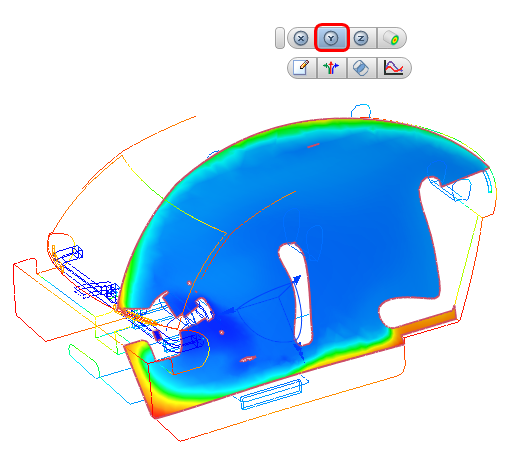 8. Trascinare la freccia a triade perpendicolare al piano per visualizzare la distribuzione di temperatura in tutta la cabina.