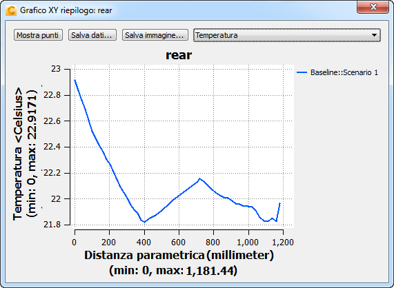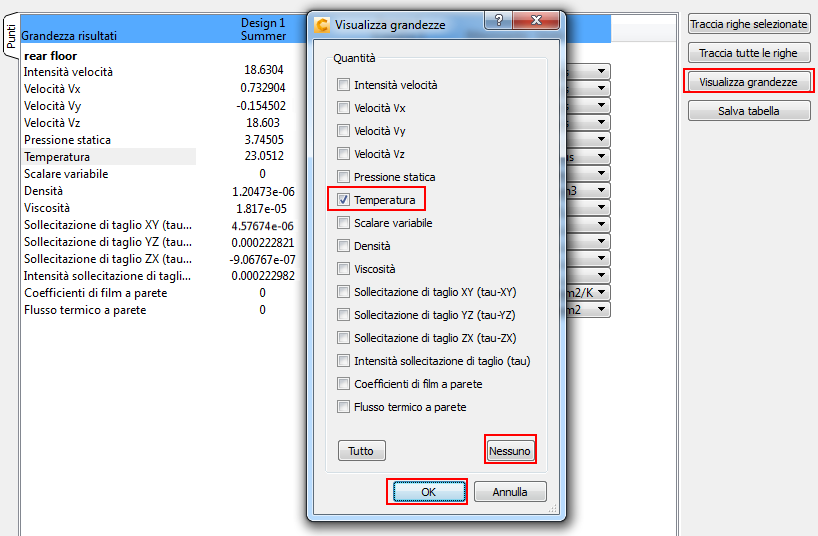 6. Per visualizzare solo il risultato relativo alla temperatura nel punto di riepilogo, fare clic su Visualizza grandezze. Nella finestra di dialogo Visualizza grandezze, fare clic su Nessuno, quindi selezionare Temperatura. Fare clic su OK.