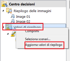 Nel Centro decisioni, fare clic con il pulsante destro del mouse su Valori di riepilogo e scegliere Aggiorna valori di riepilogo.