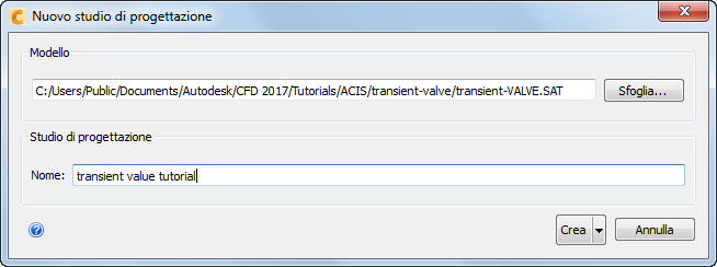Nella finestra di dialogo Gestione file, passare alla cartella Utenti\Pubblica\Documenti pubblici\Autodesk\CFD 2017\Tutorials\<tipo di file>\transient-valve.