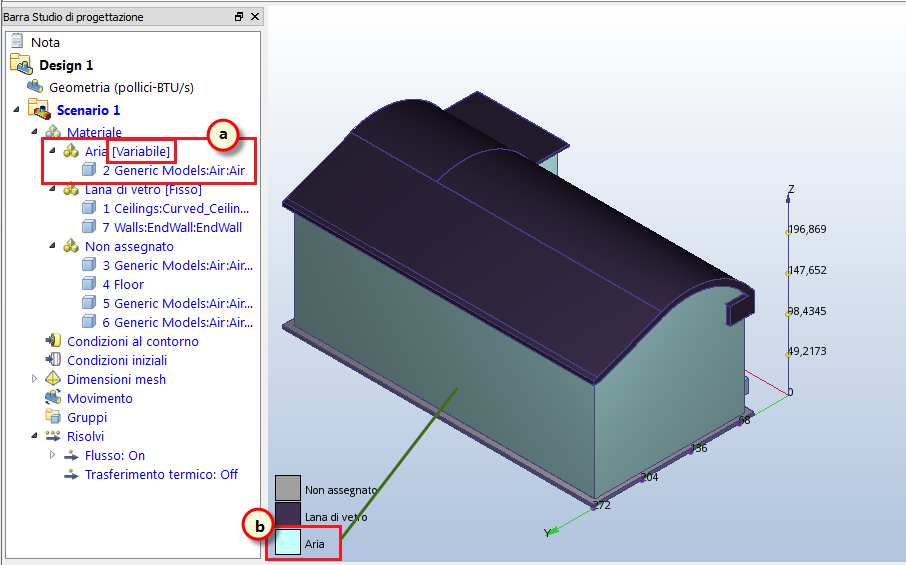 9. Per verificare che il materiale Aria sia assegnato correttamente, controllare la barra Studio di progettazione e il colore della parte: