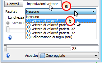 - b. Selezionare Vettore di velocità dal menu Risultati.