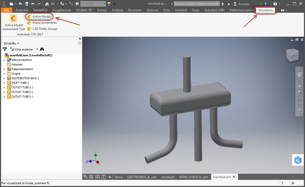 Ad esempio, se si esegue l'avvio da Autodesk® Inventor, fare clic su Simulation e su Active Model: