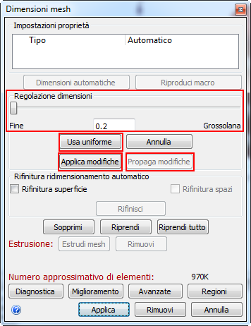 Per modificare il dimensionamento della mesh, effettuare UNA delle seguenti operazioni: