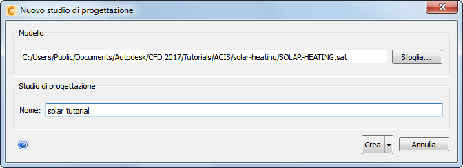 Nella finestra di dialogo Gestione file, passare alla cartella Utenti\Pubblica\Documenti pubblici\Autodesk\CFD 2017\Tutorials\<tipo di file>\solar-heating.