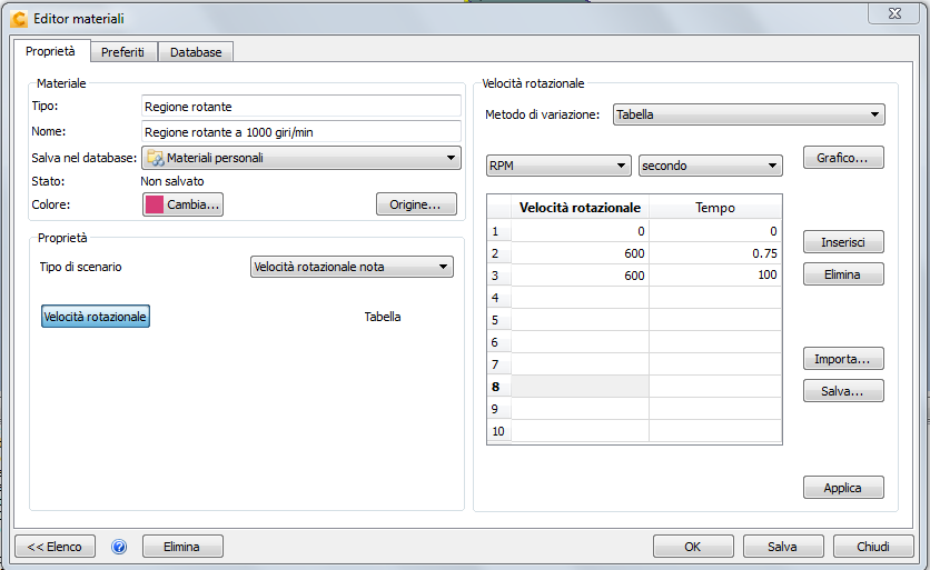 Controllare che il tipo di scenario sia Velocità rotazionale nota