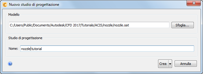 Nella finestra di dialogo Gestione file, passare alla cartella Utenti\Pubblica\Documenti pubblici\Autodesk\CFD 2017\Tutorials\<tipo di file>\nozzle.