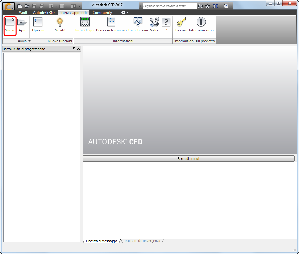Viene avviato Autodesk® CFD e viene creato lo studio di progettazione per l'esercitazione.