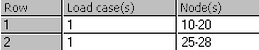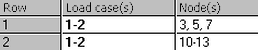 Although the spreadsheet cells can be expanded, it may be inconvenient to put too many entries into a given cell. Instead of placing all the entries into the Node(s) column of the spreadsheet, the entries can be placed in multiple row. In such situations, highlight the multiple rows and click the Merge Load Case button. Clicking the button does three things: