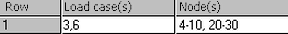 would write the results for nodes 4 through 10 and 20 through 30 for load case 3, and then the same nodes for load case 6. Ranges must be in ascending order (lower value - higher value). Up to 50 entries can be in a given cell. Forty nine commas can be used to separate 50 values (either individual values or ranges). The results will be translated to the new results file in the order provided in the spreadsheet.