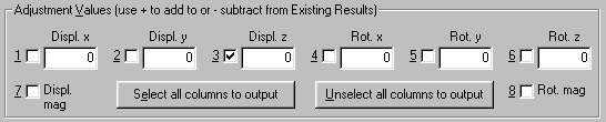 6. Since only the Z displacement is required, turn off all the check marks except for the Displ. z in the Adjustment Values section.