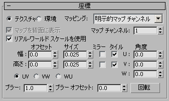 2D マップの[座標](Coordinates)ロールアウトのコントロールはマップの位置に影響します。