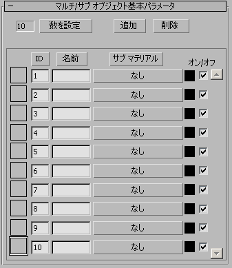 マルチ/サブオブジェクト マテリアルは、同一オブジェクトの異なる面に割り当てられた複数のサブマテリアルのコンテナに過ぎません。[サブマテリアル](Sub-Material)ボタンをクリックしてサブマテリアルに移ります。
