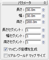 [長さセグメント](Length Segs)、[幅セグメント](Width Segs)、[高さセグメント](Height Segs)フィールドがすべて 1 (既定値)に設定されていることを確認します。