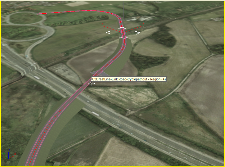 このレッスンでは、2 本のブリッジを作成します。Civil View では、ブリッジは読み込まれたライン ジオメトリに基づくスイープ オブジェクトの例になります。