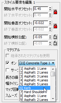 ([新規要素を追加](Add new element))をクリックします。 また、[マテリアル](Material)サブ領域で[幅タイリング](Width Tiling)の値を 0.2 に設定し、新しい歩道のパターンが地面にある道路と一致するようにします。