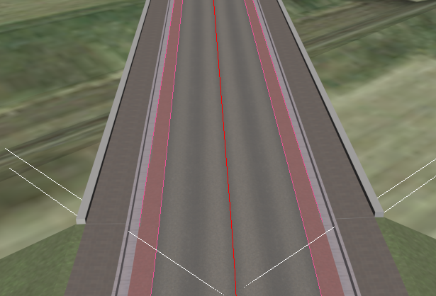 選択したシェイプは、ブリッジをかける道路の片側に 1 つずつの 2 つのスプラインで構成されます。