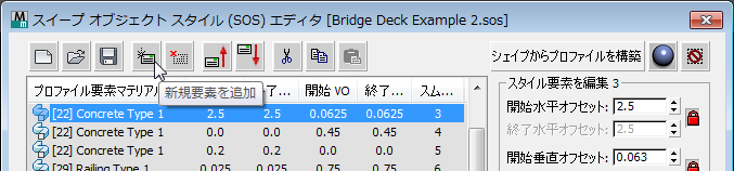 ブリッジを構築するには、新しい要素を追加します。要素を追加してリファインすると、新しい固有のスイープ オブジェクト スタイル(SOS)も作成され、今後のプロジェクトで使用するために保存することができます。