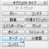 [テープ](Tape)ヘルパーを使用すると、カメラとシーン内の 3 つのオブジェクト(椅子、植木鉢、建物のコーナー)との距離を測ることができます。各オブジェクトの位置は焦点面(そのシーンで最もはっきりと焦点が合う領域)となります。