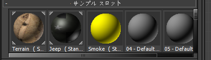 - [サンプル スロット](Sample Slots)グループで Smoke マテリアルをダブルクリックします。