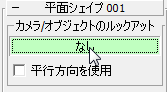 - Shape Facing オペレータのロールアウトで、[カメラ/オブジェクトのルックアット](Look At Camera/Object)ボタン(現在「なし」と表示されている)をオンにし、Camera01 をクリックします。