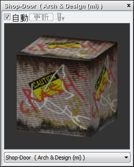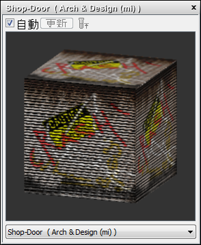 バンプ マッピングを使用してレンダリングした、完全に合成されたシャッター扉