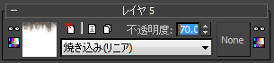 [焼き込み線形](Linear Burn)は、1 番上のレイヤのピクセルのカラーを下にあるレイヤのカラーと結合します。レイヤ 5 のカラーが暗いほど効果が大きくなります。このため、既定値のブレンドでは暗すぎる結果になります。