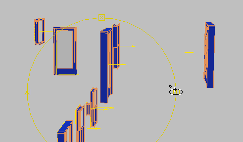 - PivotDoor02 オブジェクト(ビューポートの右上コーナーの右から 2 番目)を除くシーン内のすべてのドアおよび窓のオブジェクトについて同じ手順を繰り返します。