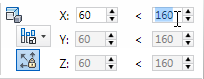 - また、[スケール](Scale)領域で X の最小値(左側)を 60 に、最大値(右側)を 160 に設定します。