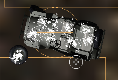 追加が完了すると、ジープはパーティクル シードにかなり覆われた状態になります。