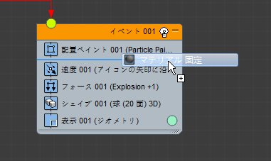 - パーティクル ビューで、Event 02 のタイトル バーをクリックしてイベント全体を選択します。