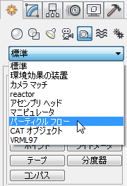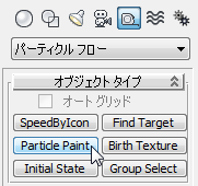 ([ヘルパー](Helpers))をアクティブにします。ドロップダウン リストから[パーティクル フロー](Particle Flow)を選択し、[オブジェクト タイプ](Object Type)ロールアウトで[Particle Paint]をアクティブにします。