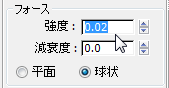 - また、[フォース](Force)領域で[強度](Strength)の値を 0.02 に変更します。