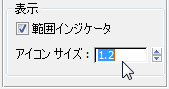 [表示](Display)領域で、[アイコン サイズ](Icon Size)の値を 1.2 に変更します。