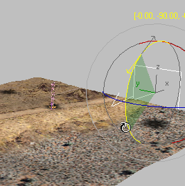 ([角度スナップ切り替え](Angle Snap Toggle))がオンなことを確認し、Camera01 ビューポートをアクティブにします。矢印が左に向くように、[風](Wind)アイコンを Y 軸を中心に –90 度回転します。